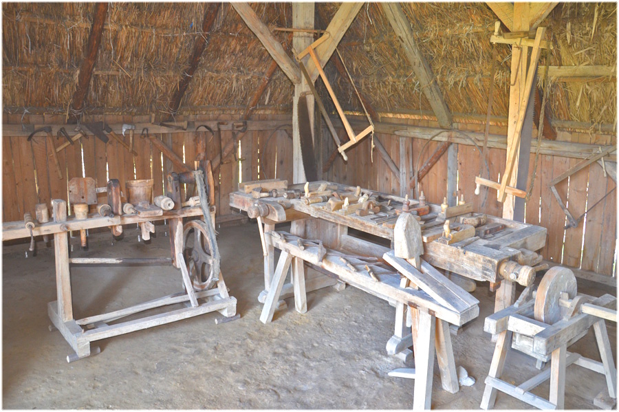 Крокуючи вулицею далі, потрапляємо у іншу оселю – це садиба із села Лашківка Кіцманського району, збудована в 70-х рр. ХІХ ст. У дворі бачимо багато добротних господарських споруд. Стайня для утримання худоби зрубної конструкції, дбайливо обмащена глиною та побілена. До стайні прибудована стодола, шальована дошками. Дах будівлі чотирисхилий покритий очеретом. В стодолі встановлено столярний верстат з різними інструментами для обробки дерева.