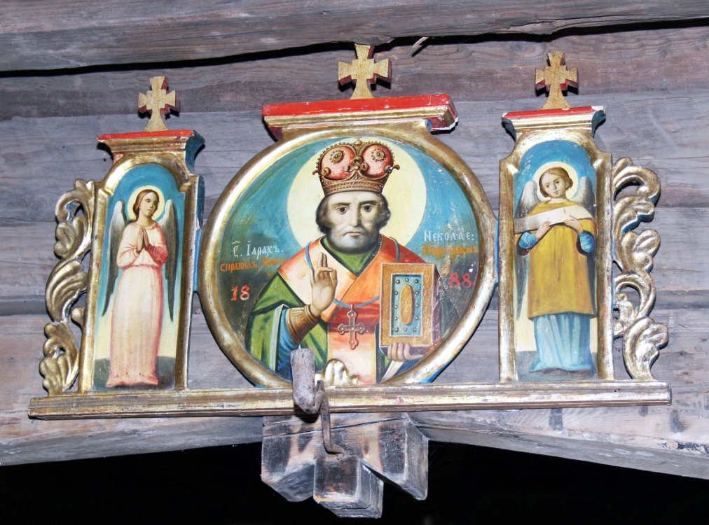 Із ікон, що належали нашій церкві збереглись тільки три. Їх ви можете побачити на стіні нави ліворуч. На них відображено відомі біблійні сюжети: «Втеча до Єгипту», «Перенесення мощів св. Миколая з Мир Лікійських до Бару», «Жертвоприношення Авраама».Вони датуються кінцем ХVІІІ – початком ХIХ століття і є яскравим зразком буковинського народного примітиву.